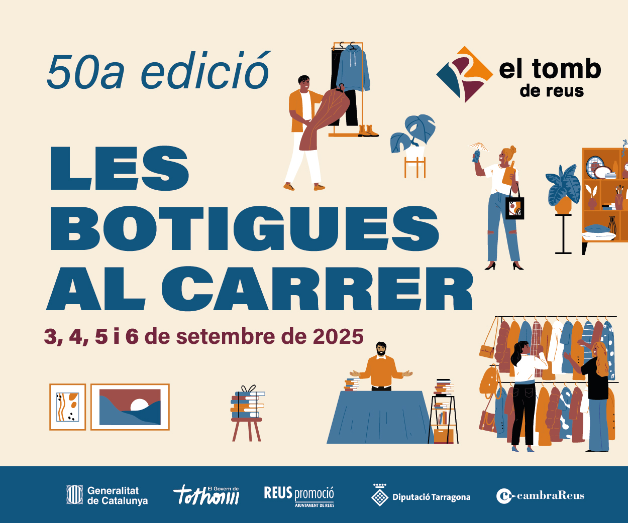 Aquest setembre, el centre de Reus tornarà a omplir-se de vida, colors i oportunitats amb la 50a edició de “Les Botigues al Carrer”, una de les cites comercials més estimades i consolidades de la ciutat. Durant quatre dies, del 3 al 6 de setembre, prop d’un centenar d’establiments de comerç, bellesa i serveis del centre –tant associats com no associats a El Tomb– sortiran al carrer per oferir grans descomptes i novetats en moda, complements, decoració, bellesa, articles per a la llar i molt més.