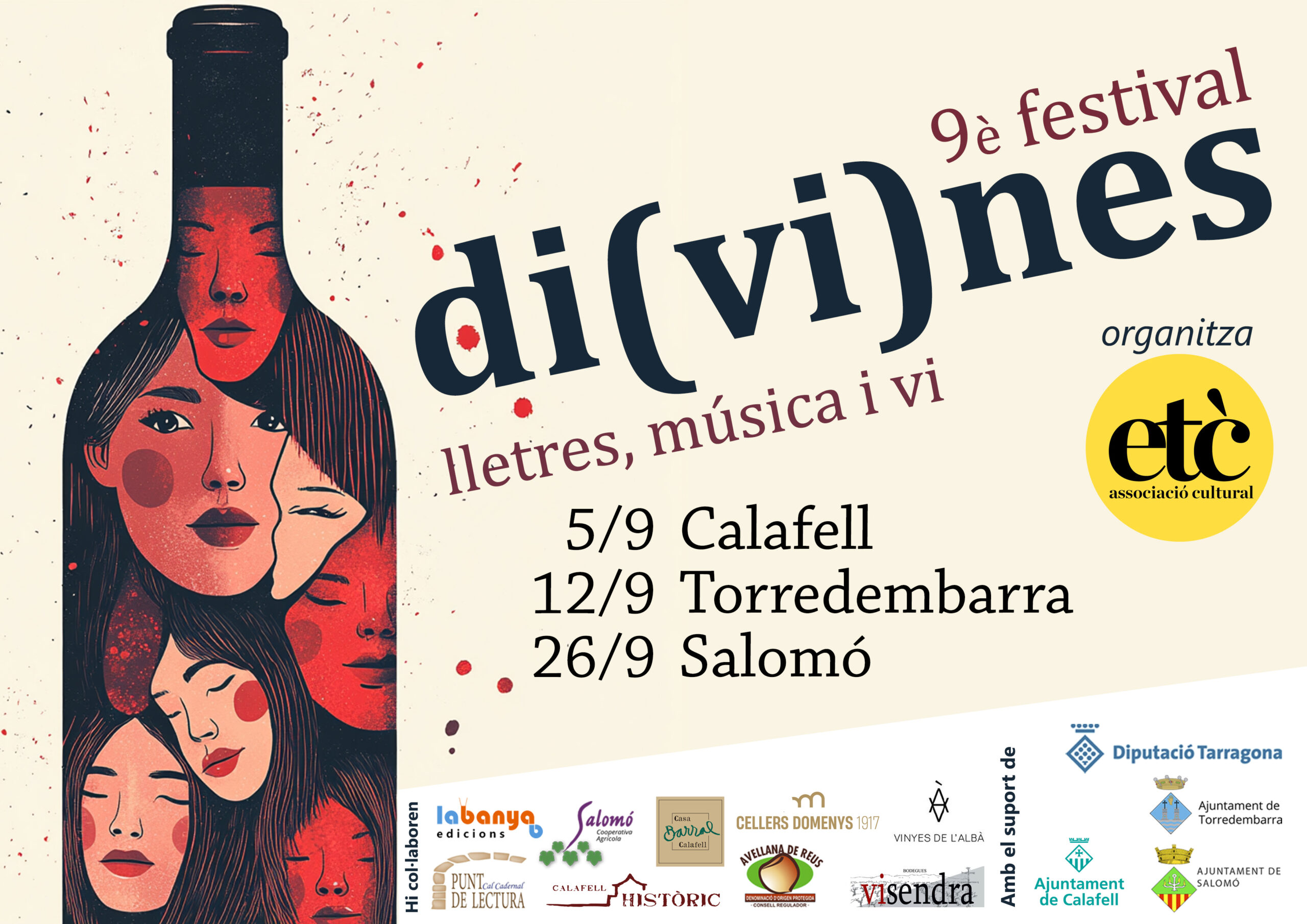 El festival Di(vi)nes, espai de difusió de la creativitat en clau femenina, tornarà a caminar el proper mes de setembre en la que serà la novena edició i estrenant un nou escenari. Enguany, aquest esdeveniment que organitza l’associació cultural Etcètera i que marida la poesia, la música i el vi, incorpora Calafell a la nòmina d’espais divins.