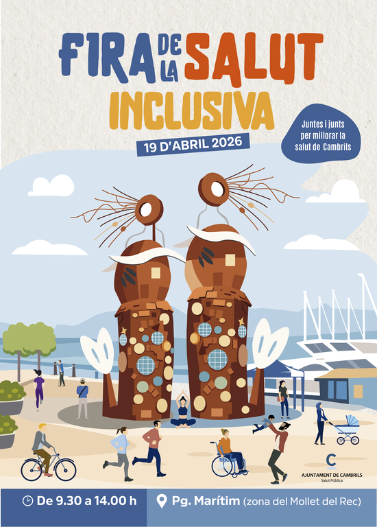 L’Ajuntament de Cambrils, a través del Departament de Salut Municipal, organitza la Fira de la Salut, que se celebrarà al Passeig Marítim (Mollet del Rec), al Port de Cambrils, el proper diumenge 19 d’abril de 9.30 a 14.30 hores. Aquesta jornada és l’acte central de la Setmana de la Salut Inclusiva, que busca promoure la salut comunitària, fomentar hàbits saludables i donar visibilitat a la tasca de les entitats de salut del municipi.