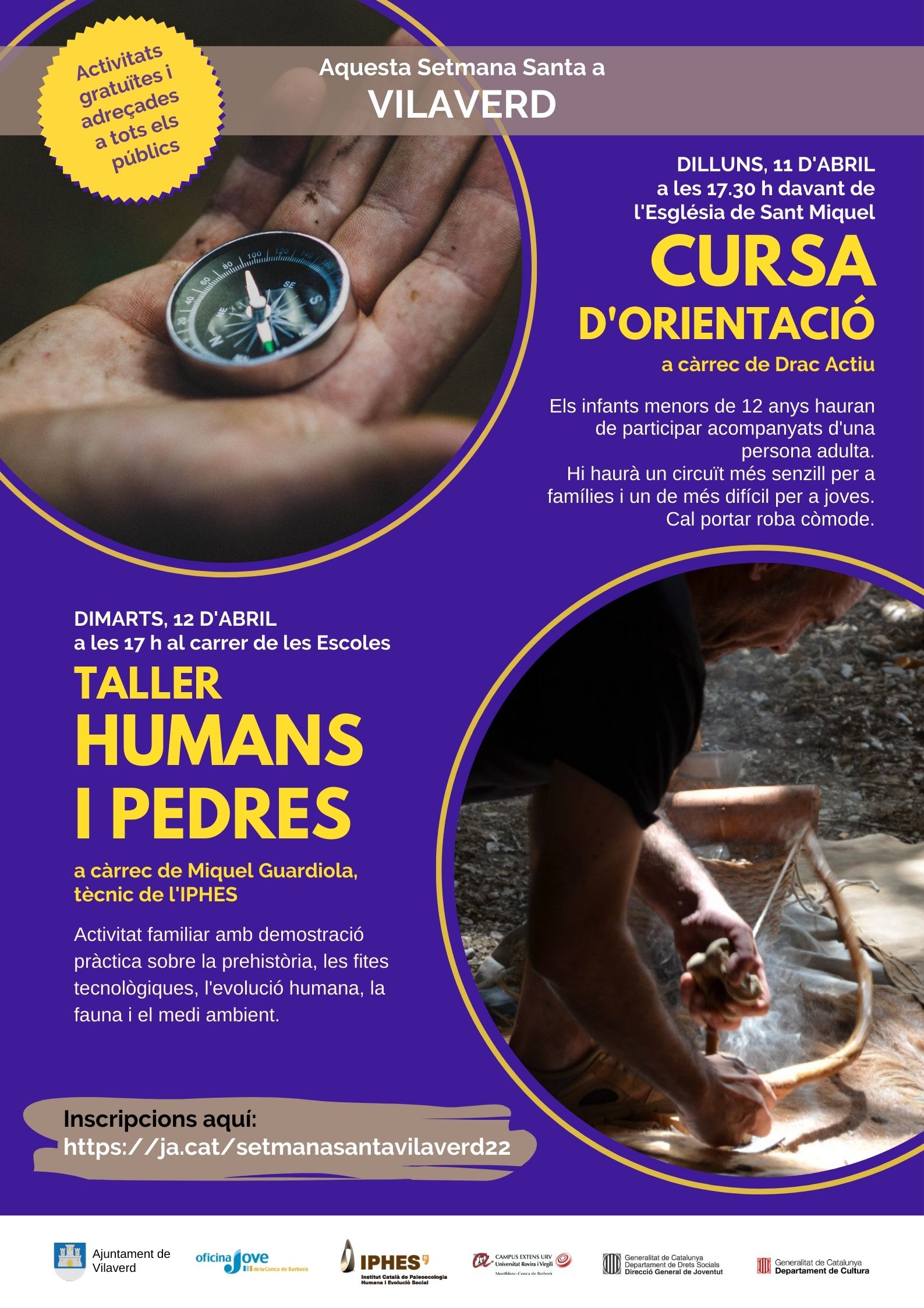 Les dues activitats són gratuïtes, però és necessari inscriure’s ja que les places són limitades. Les inscripcions es poden fer en l’enllaç següent: https://ja.cat/setmanasantavilaverd22
