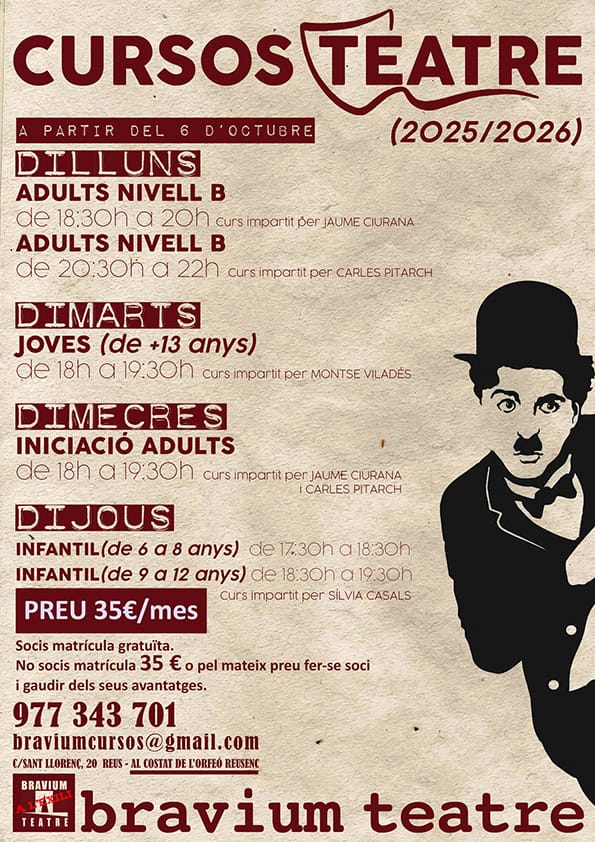 Han començat els cursos de teatre que organitza el Bravium Teatre. Els cursos programats són els següents: