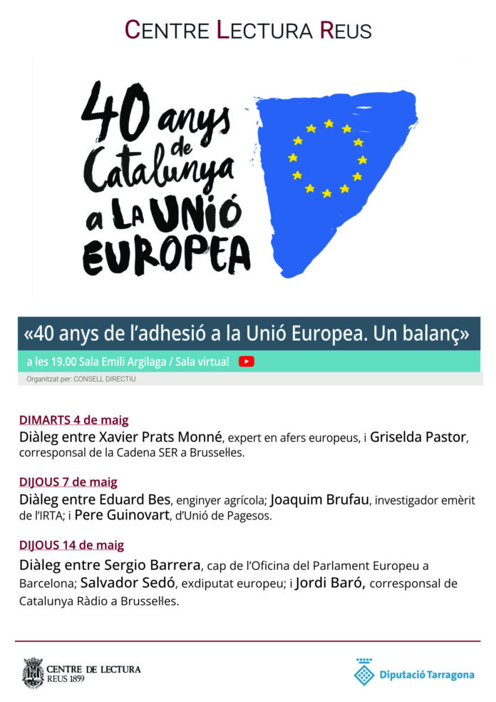 El Centre de Lectura de Reus organitza el cicle «40 anys de l’adhesió a la Unió Europea: un balanç» amb l’objectiu de reflexionar sobre què ha representat per a la ciutadania formar part de la comunitat europea des de l’1 de gener de 1986. I ho farà amb el testimoniatge de persones de les nostres comarques molt vinculades i significatives en l’àmbit de les institucions europees.