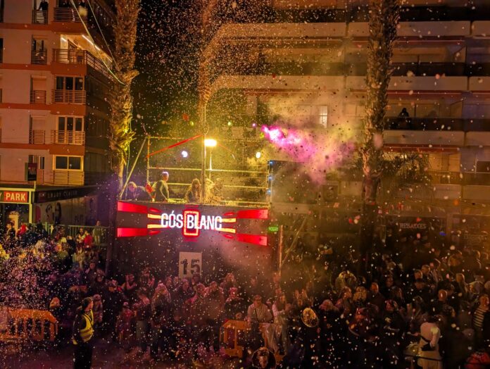 Quan el Cós Blanc ha arrencat, ho ha fet amb un desplegament espectacular: 30 torres equipades amb canons de confeti biodegradable, màquines de fum, pantalles LED gegants i 250 punts de llum mòbils que, durant més de dues hores, han transformat el frontal marítim de Salou.