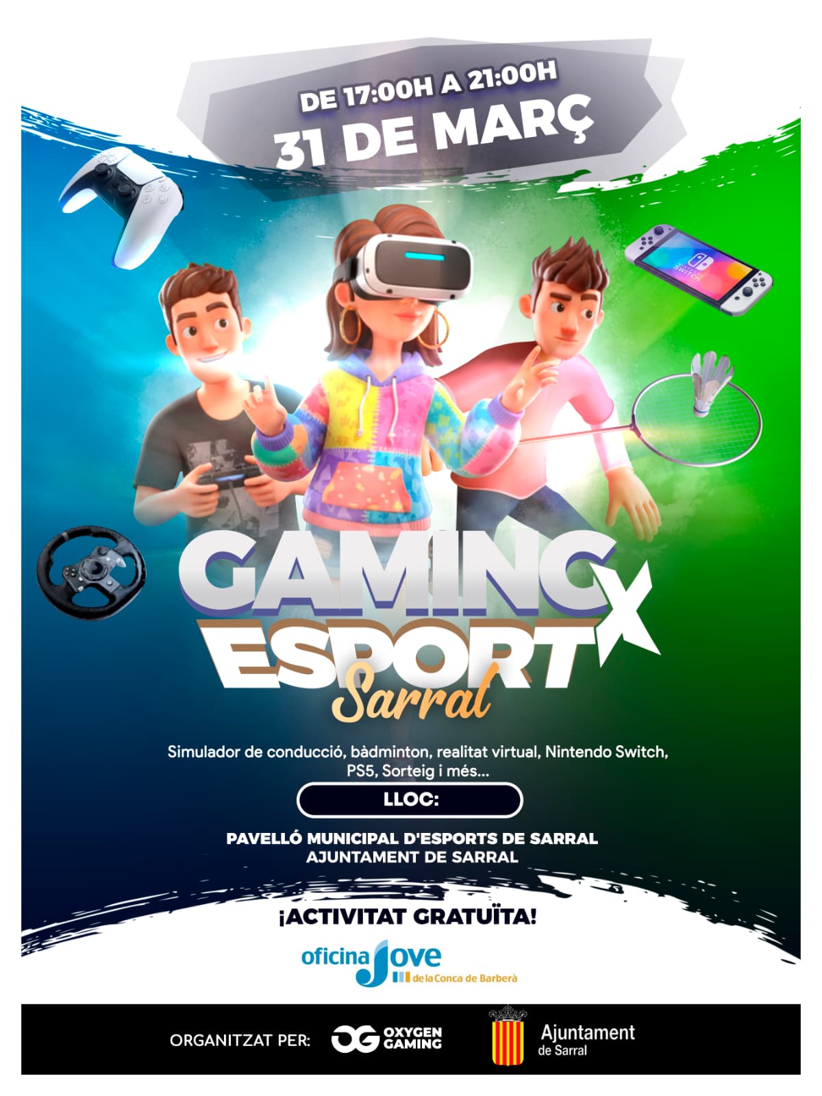 El pròxim dimarts 31 de març, el Pavelló Municipal d’Esports de Sarral es convertirà en un punt de trobada per al jovent amb la celebració d’una tarda dedicada al videojoc, la tecnologia i l’activitat física. De 17 a 21 h, els i les joves podran gaudir d’una proposta dinàmica i participativa que combina oci digital i esport, amb entrada totalment gratuïta.