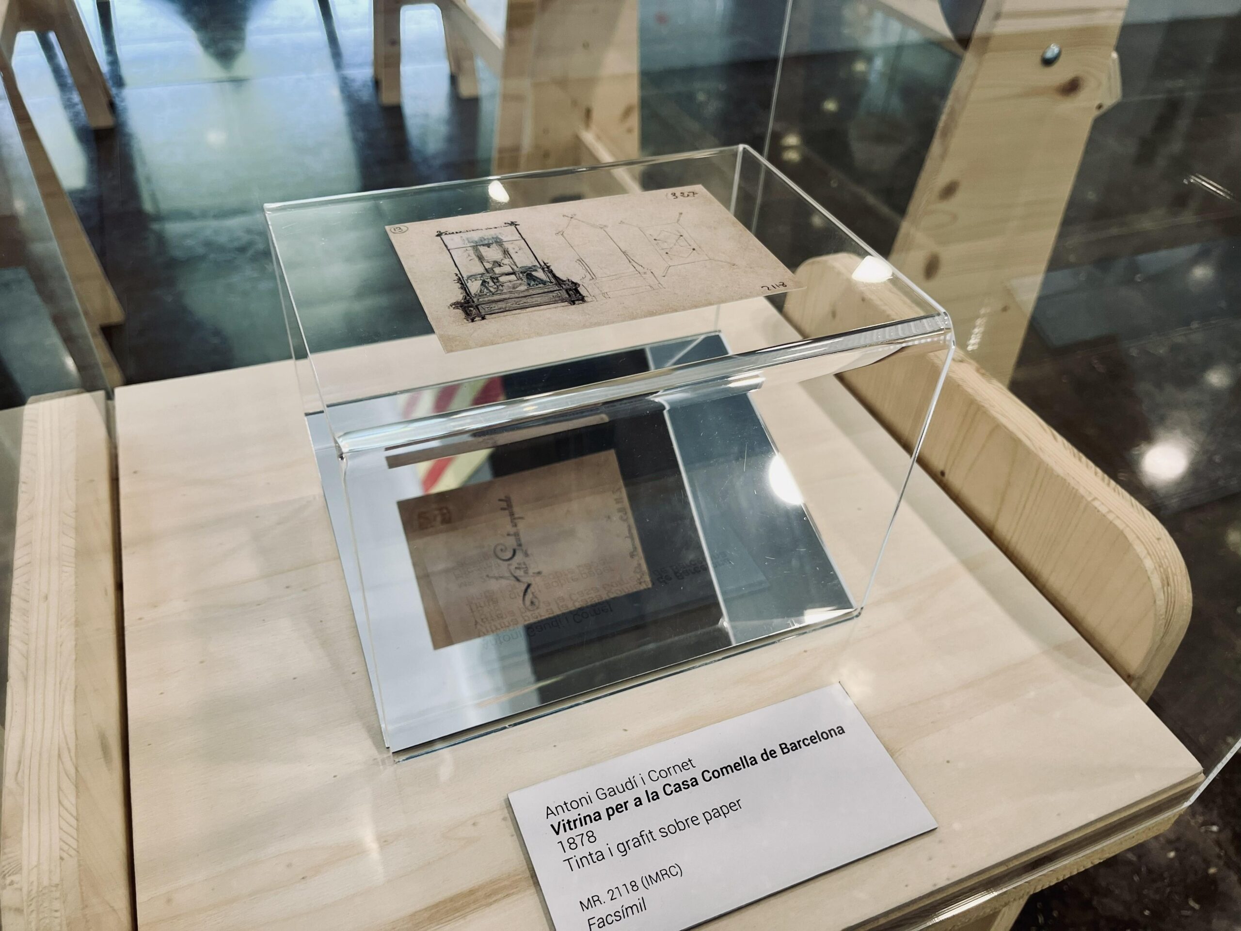 L’exposició planteja donar a conèixer aquesta peça de la col·lecció del Museu i, a través d’ella, parlar de la vida i obra d’Antoni Gaudí. Així doncs, un facsímil de la targeta de visita de Gaudí on va esbossar la vitrina de la guanteria Comella serà l’autèntic protagonista i única peça de la mostra, que anirà acompanyada d’una sèrie de plafons dissenyats exclusivament per evocar taules de dibuix. En ells es desenvolupen els tres àmbits en què es divideix la proposta expositiva, tots ells creats amb voluntat divulgativa.