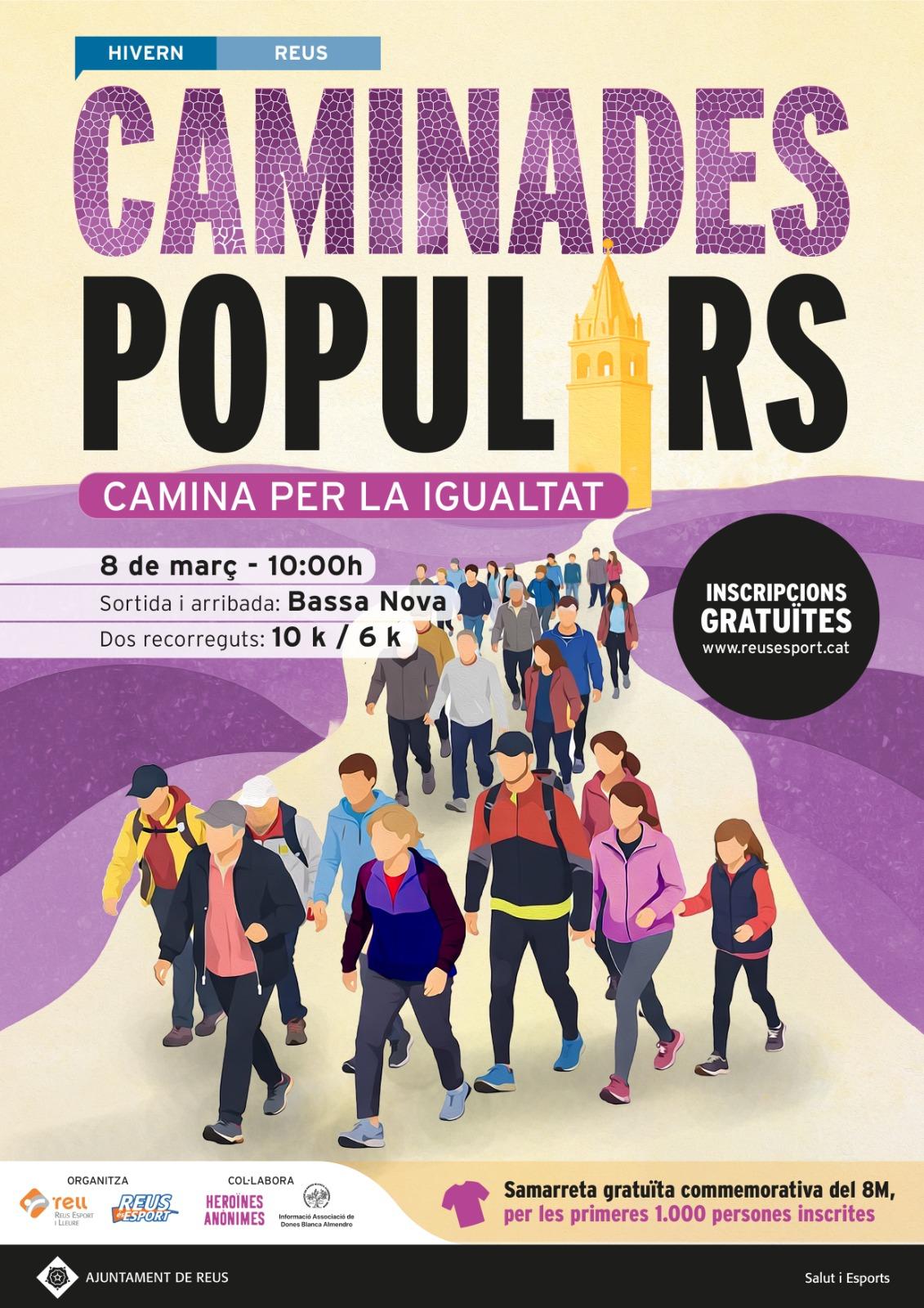 La Regidoria de Salut i Esports i Reus Esport i Lleure enceten un nou cicle de caminades populars. Com ja es va fer la temporada passada, les caminades es converteixen en altaveu social de causes socials i solidàries i en aparador de les entitats ciutadanes que hi treballen per promoure-les i, per aquest motiu, es dedicaran a tres causes: la igualtat, la salut i la inclusió social.