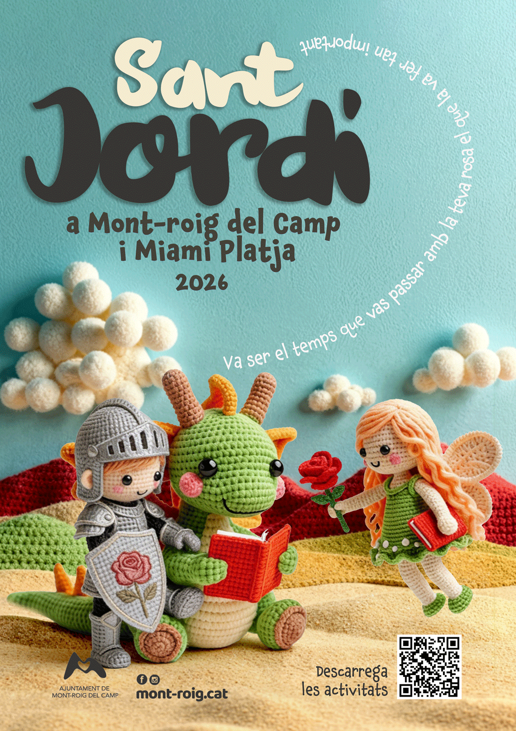 La celebració de Sant Jordi 2026 a Mont-roig del Camp i Miami Platja es presenta, un any més, com una de les cites més participatives i transversals del calendari. Més enllà de la tradicional venda de llibres i roses, la diada d’enguany destaca pel paper protagonista de les entitats locals, la col·laboració de les quals ha estat clau per confeccionar un programa ric i divers per part de l’Ajuntament de Mont-roig del Camp. Com diu la cita que encapçala el programa, “va ser el temps que vas passar amb la teva rosa el que la va fer tan important”, i és precisament aquest temps compartit i el teixit humà del municipi el que dona sentit a una festa que uneix lectura, tradició i sentiment de comunitat.