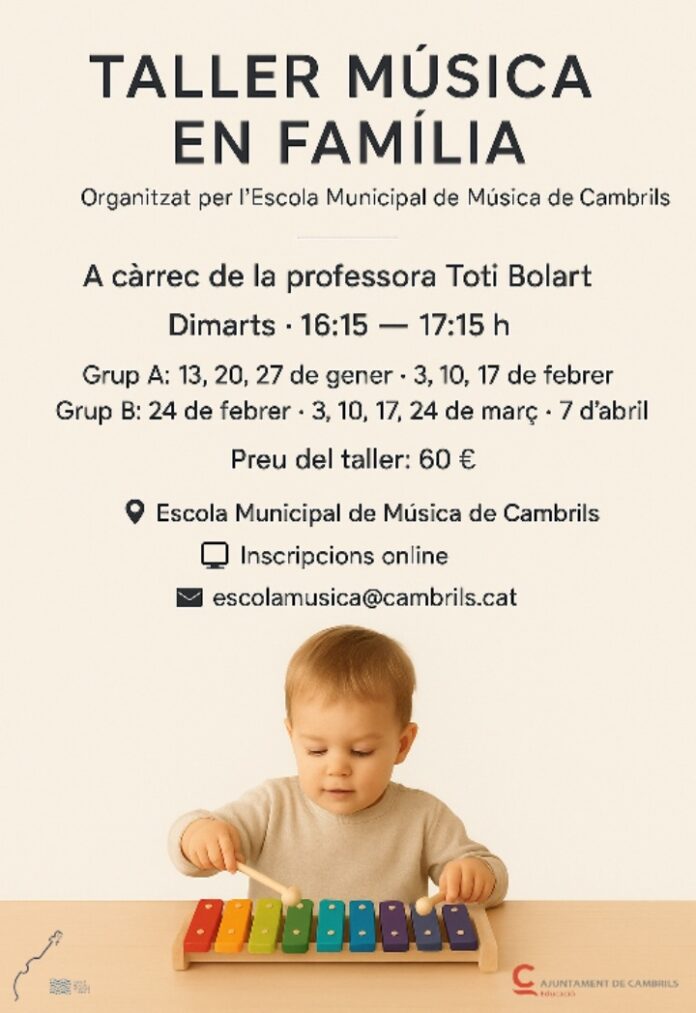 | TALLER DE MÚSICA EN FAMÍLIA – HIVERN 2026Dimarts de 16:15h a 17:15h |